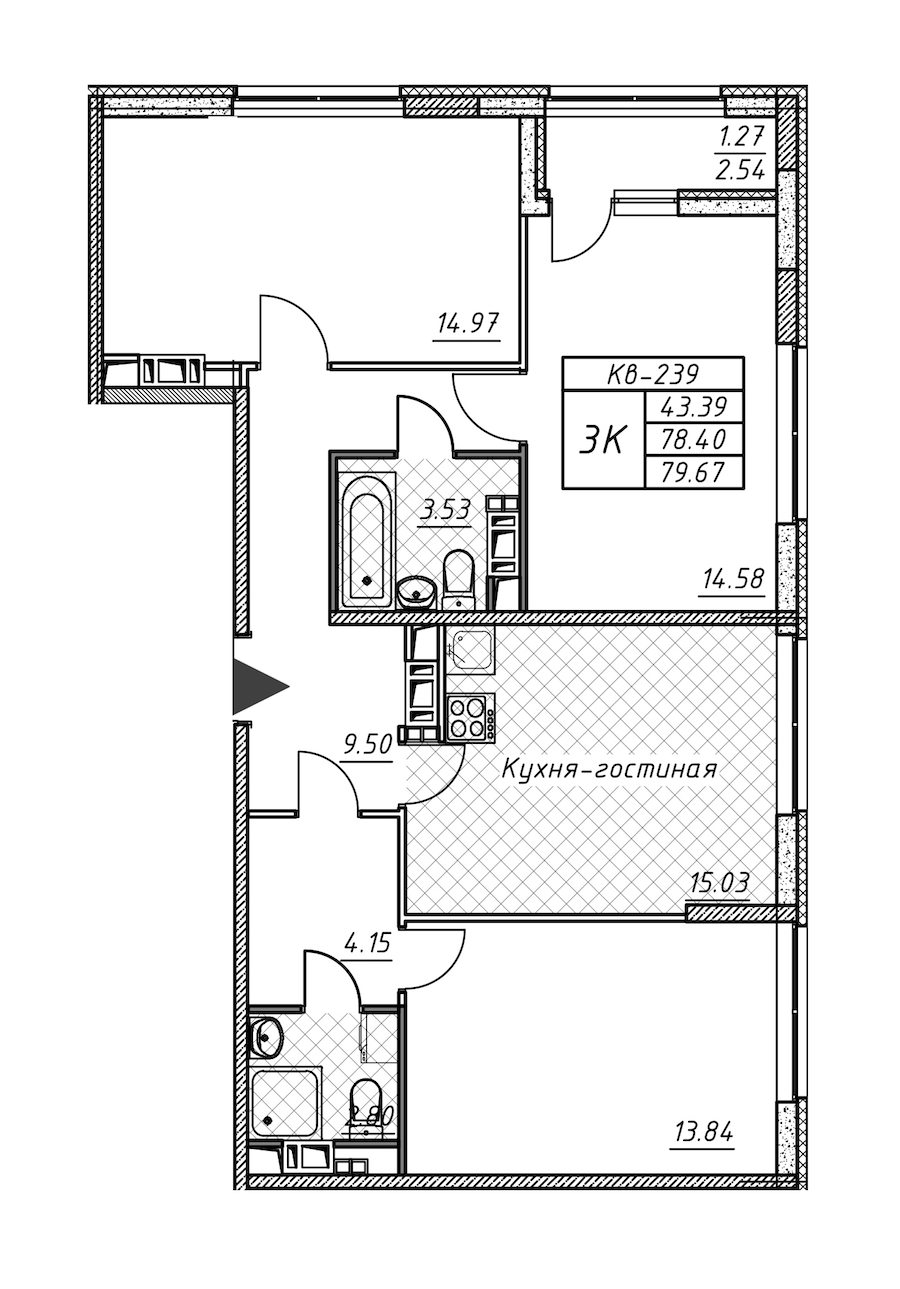 • Площадь кухни15,03 м2