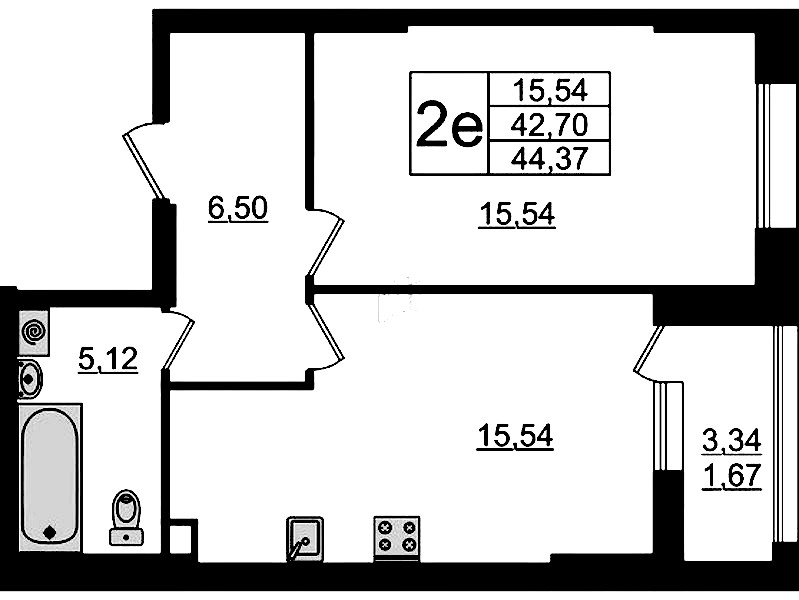 • Площадь44,37 м2