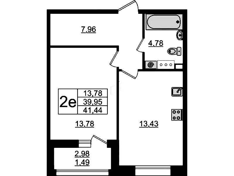 Однокомнатная квартира на 3-ем этаже 41,44 кв.м