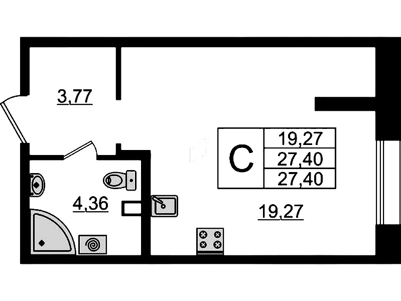 Квартира-студия на 1-ом этаже 27,4 кв.м