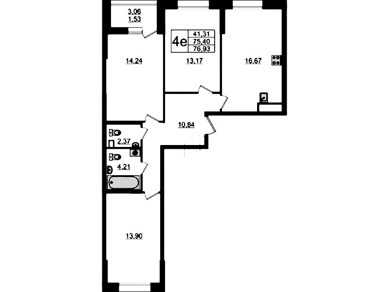 Трёхкомнатная квартира на 1-ом этаже 76,93 кв.м