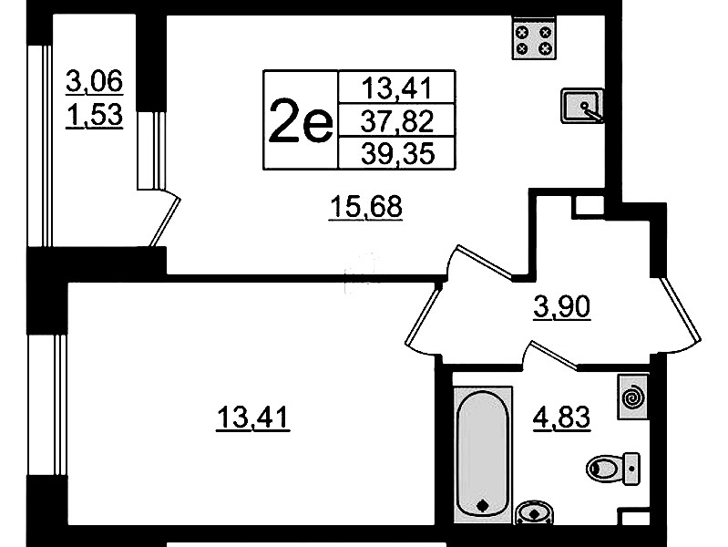 Однокомнатная квартира на 1-ом этаже 39,35 кв.м