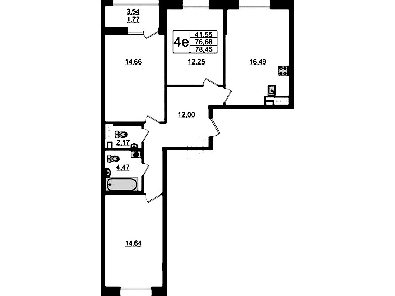 Трёхкомнатная квартира на 6-ом этаже 78,45 кв.м