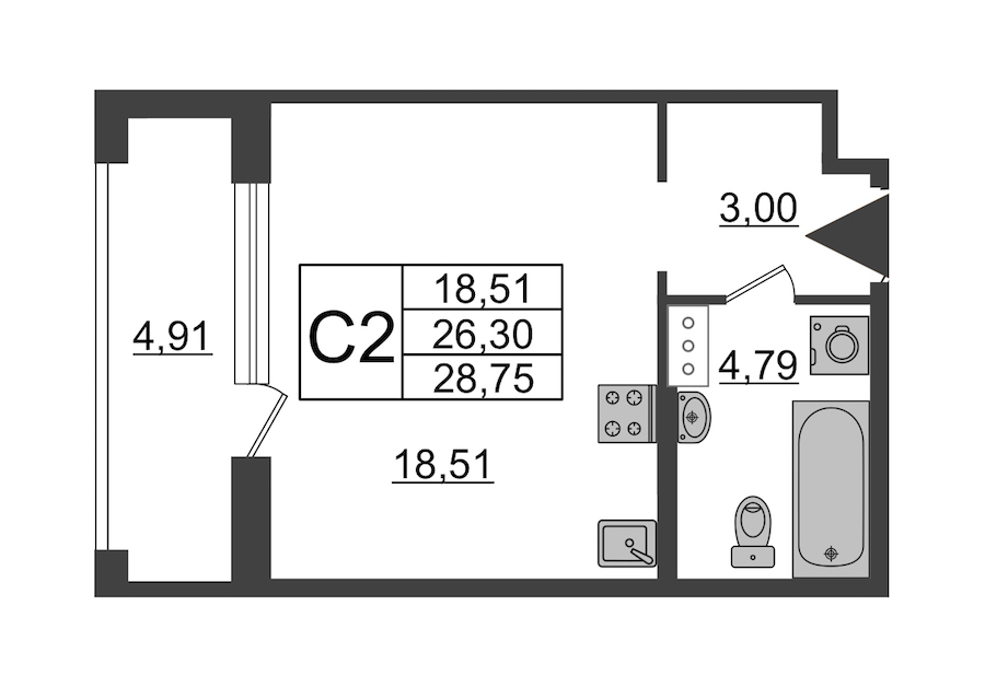 Квартира-студия на 4-ом этаже 29,7 кв.м