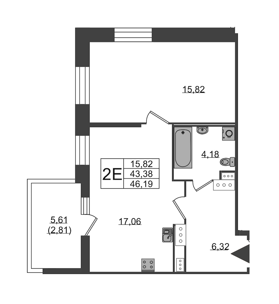 - Площадь45,8 м2