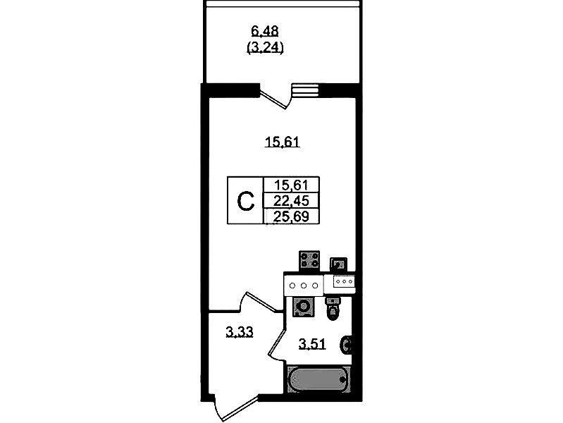 Квартира-студия на 12-ом этаже 25,69 кв.м