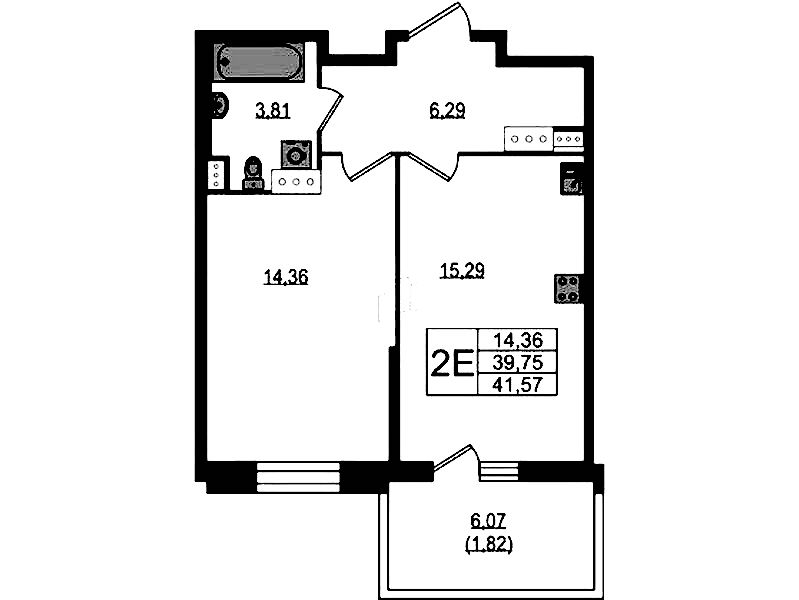 Однокомнатная квартира на 5-ом этаже 40,8 кв.м