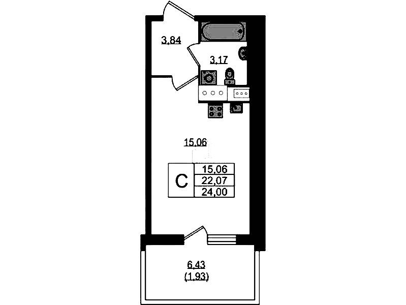 Квартира-студия на 11-ом этаже 22,9 кв.м