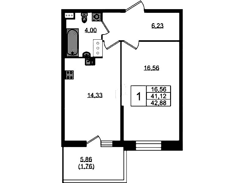 Однокомнатная квартира на 11-ом этаже 42,4 кв.м