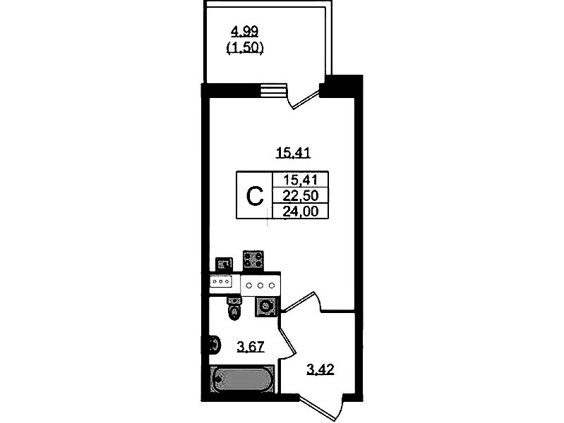 Квартира-студия на 11-ом этаже 23,7 кв.м