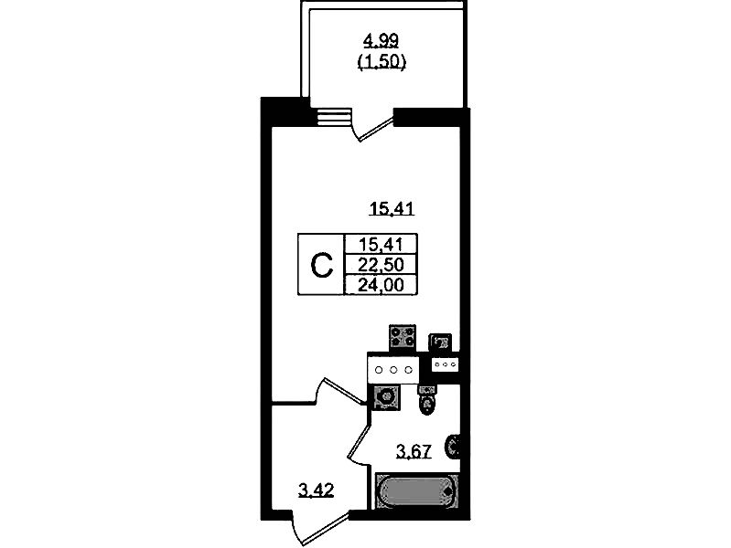 Квартира-студия на 2-ом этаже 23,8 кв.м