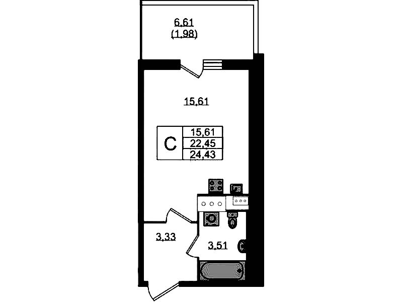 Квартира-студия на 8-ом этаже 24,4 кв.м