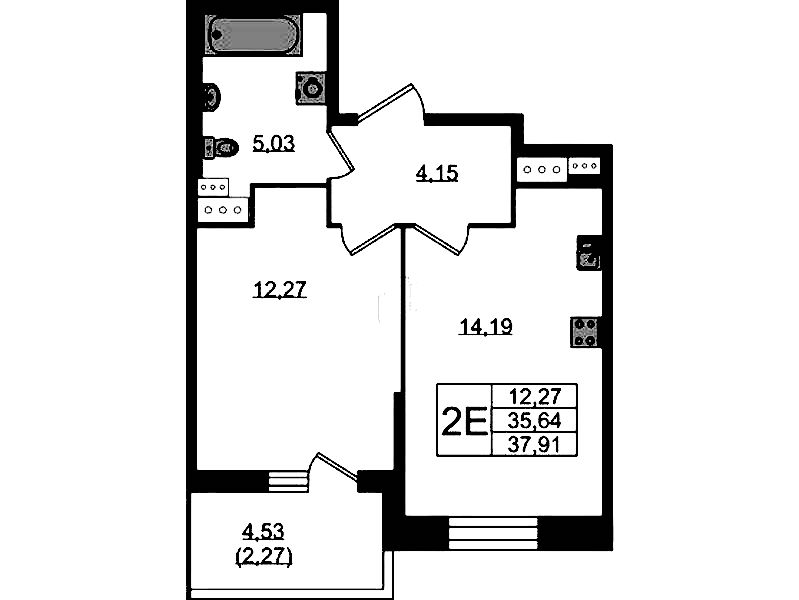- Площадь37,4 м2