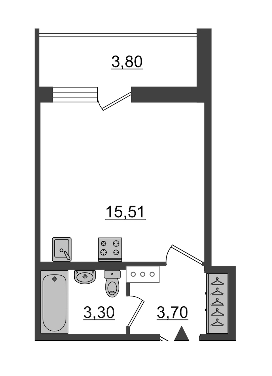 Квартира-студия на 7-ом этаже 25,1 кв.м