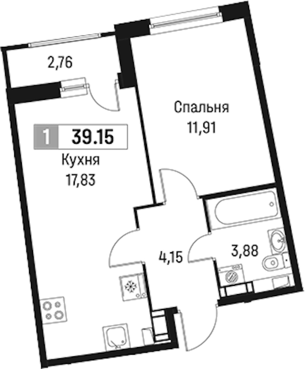 - Площадь39,15 м2
