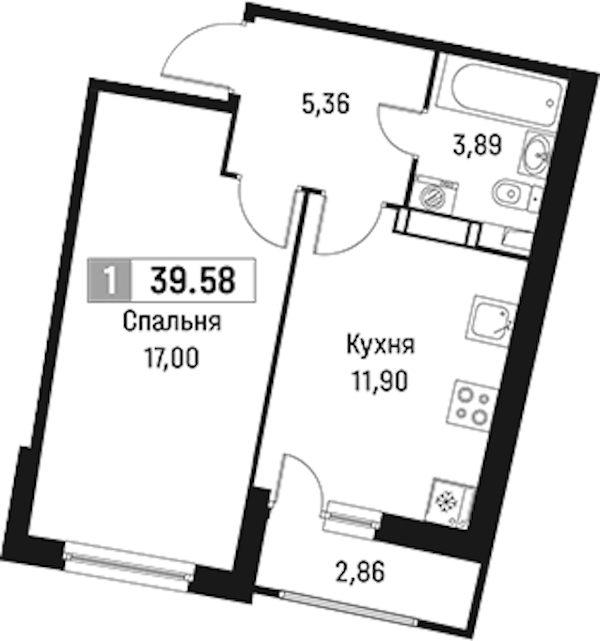 • Площадь39,58 м2