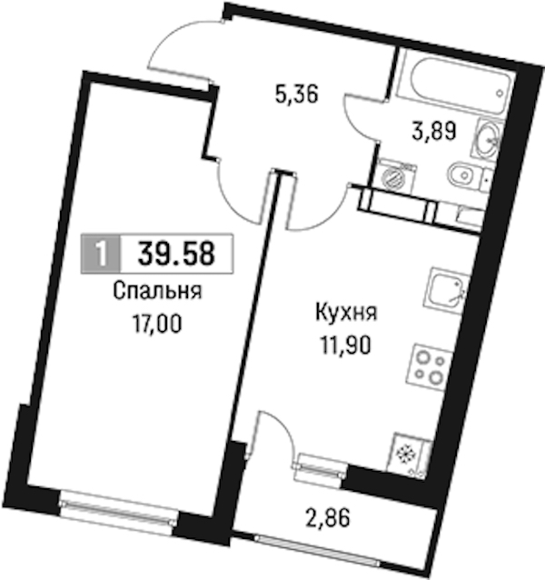• Площадь39,58 м2