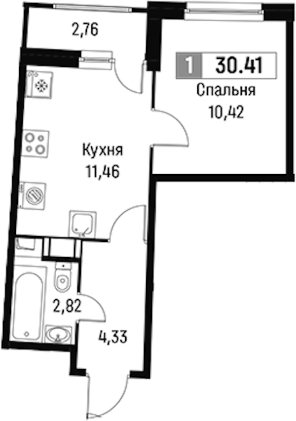 Однокомнатная квартира на 8-ом этаже 30,41 кв.м