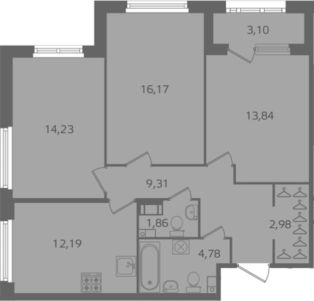 Трёхкомнатная квартира на 5-ом этаже 75,36 кв.м