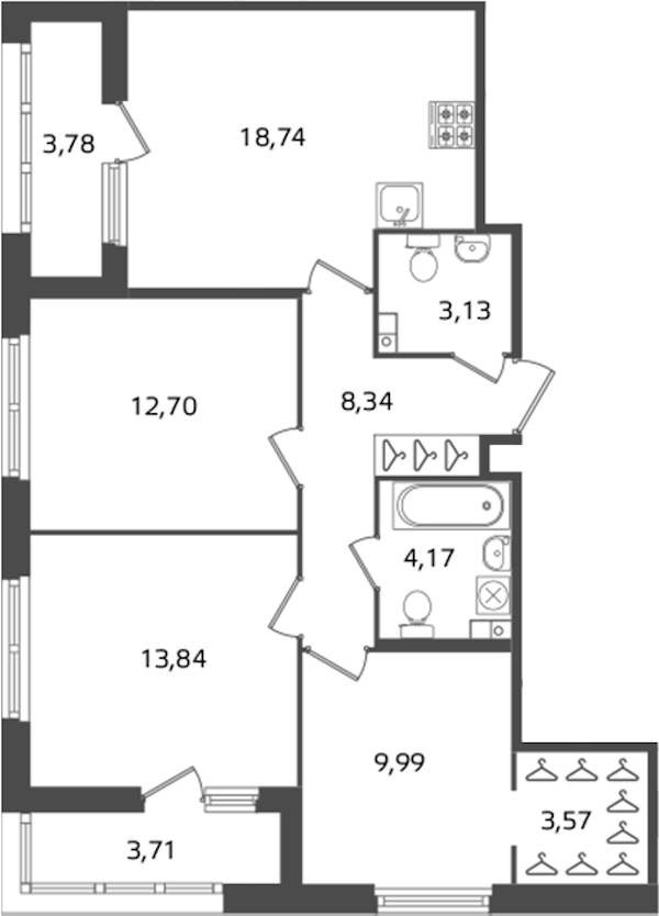 • Площадь кухни18,74 м2