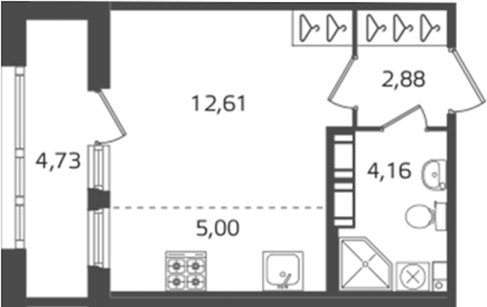Квартира-студия на 15-ом этаже 24,65 кв.м