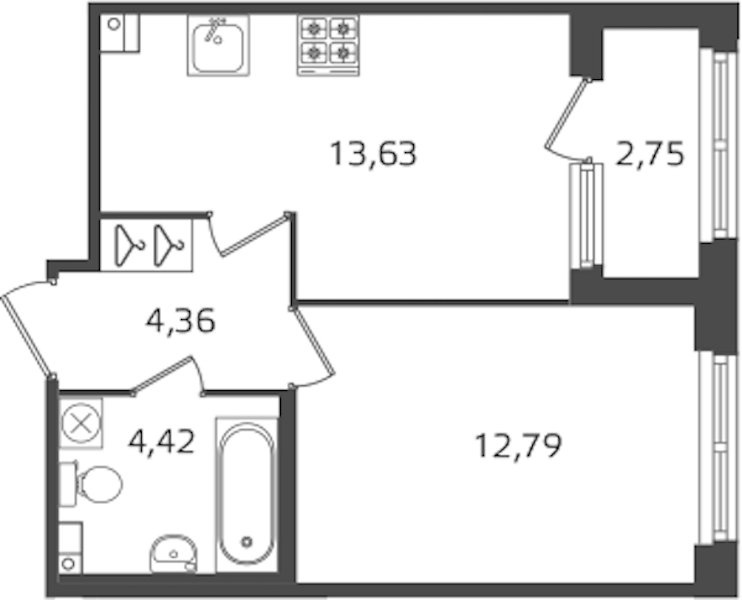 Однокомнатная квартира на 3-ем этаже 35,2 кв.м