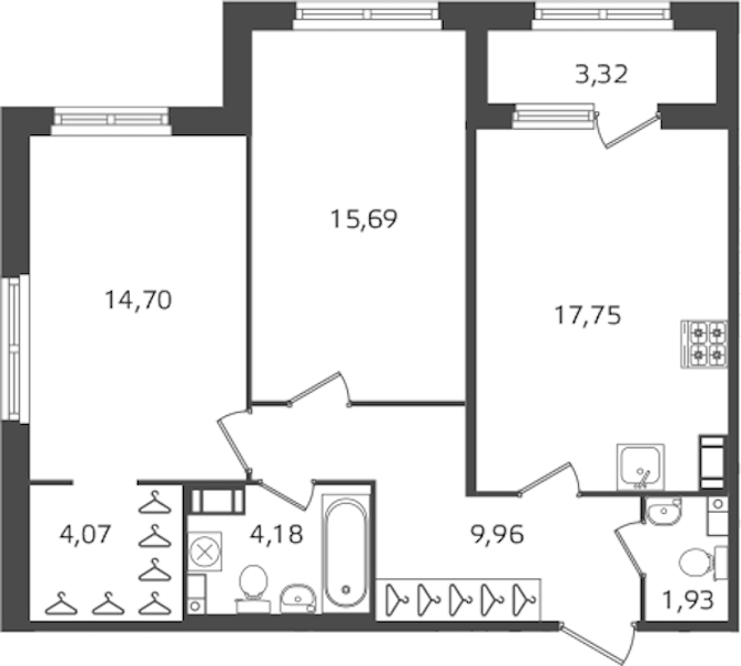 Двухкомнатная квартира на 4-ом этаже 68,28 кв.м