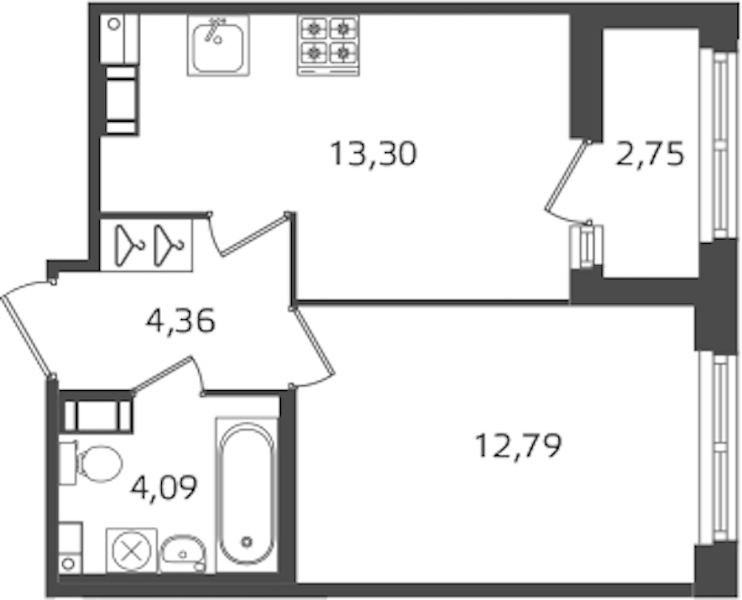 - Площадь кухни13,3 м2