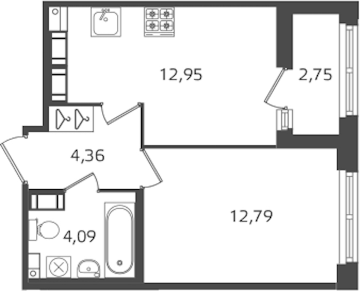 Однокомнатная квартира на 14-ом этаже 34,19 кв.м