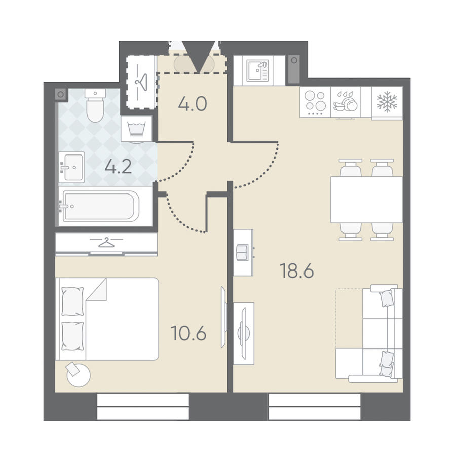 • Площадь37,4 м2