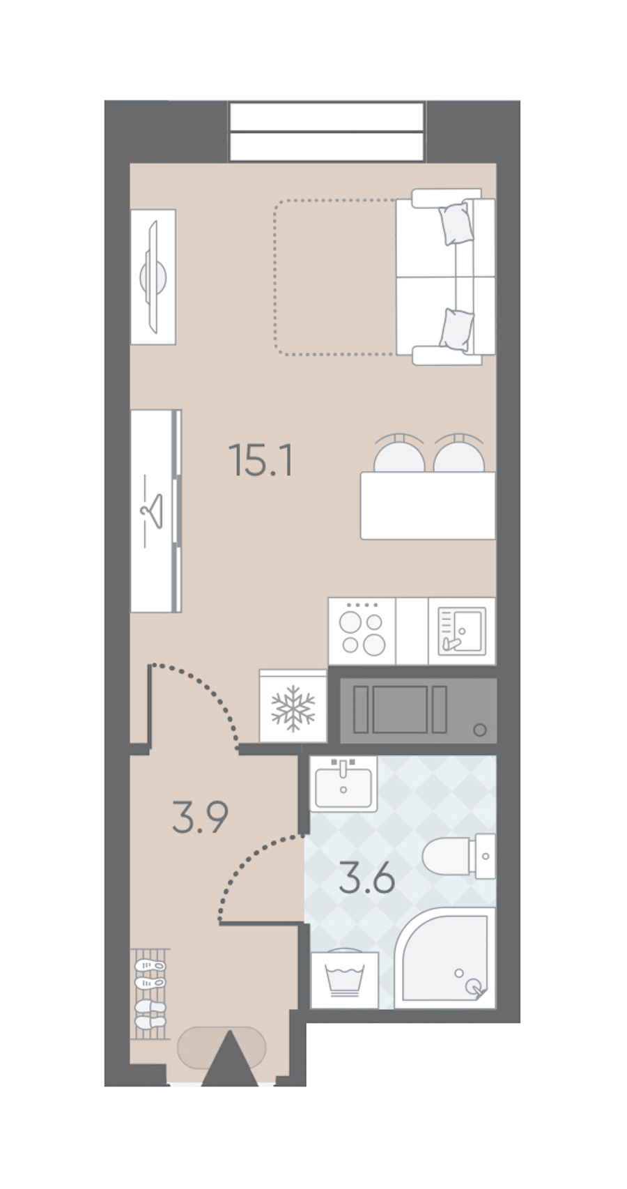 Квартира-студия на 9-ом этаже 22,6 кв.м