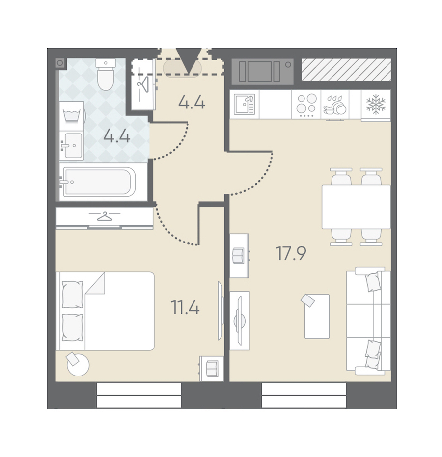 Однокомнатная квартира на 4-ом этаже 38,1 кв.м