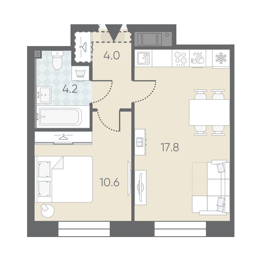 Однокомнатная квартира на 10-ом этаже 36,6 кв.м