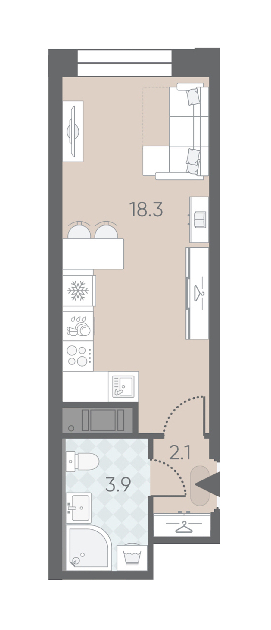 Квартира-студия на 10-ом этаже 24,3 кв.м