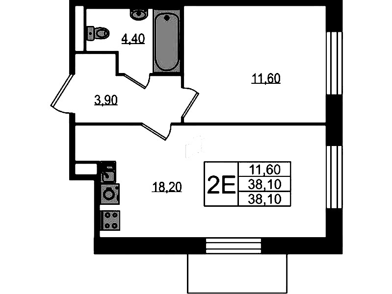 Однокомнатная квартира на 2-ом этаже 38,1 кв.м