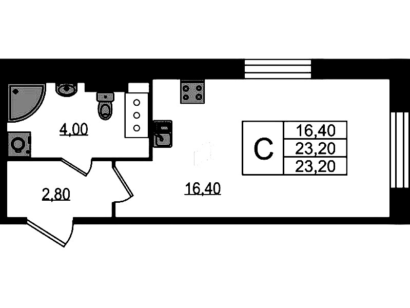 - Площадь23,2 м2