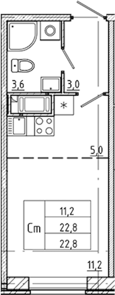 Квартира-студия на 11-ом этаже 22,8 кв.м