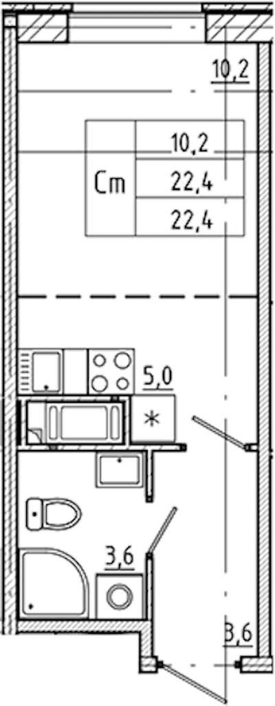 Квартира-студия на 12-ом этаже 22,4 кв.м