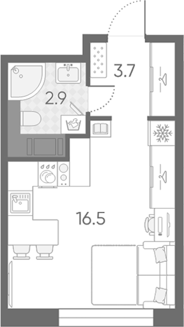 Квартира-студия на 10-ом этаже 23,1 кв.м