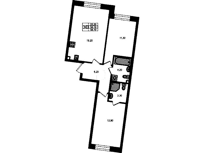 • Площадь58,1 м2