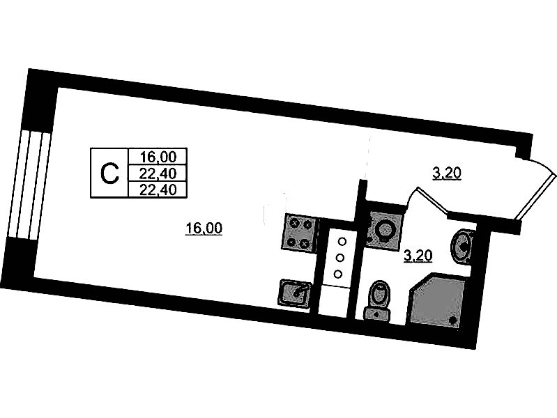 - Площадь22,4 м2