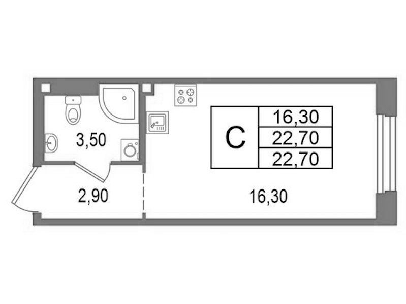 • Площадь22,7 м2