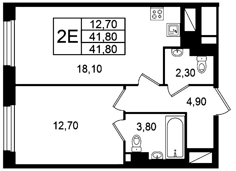 Однокомнатная квартира на 4-ом этаже 41,8 кв.м