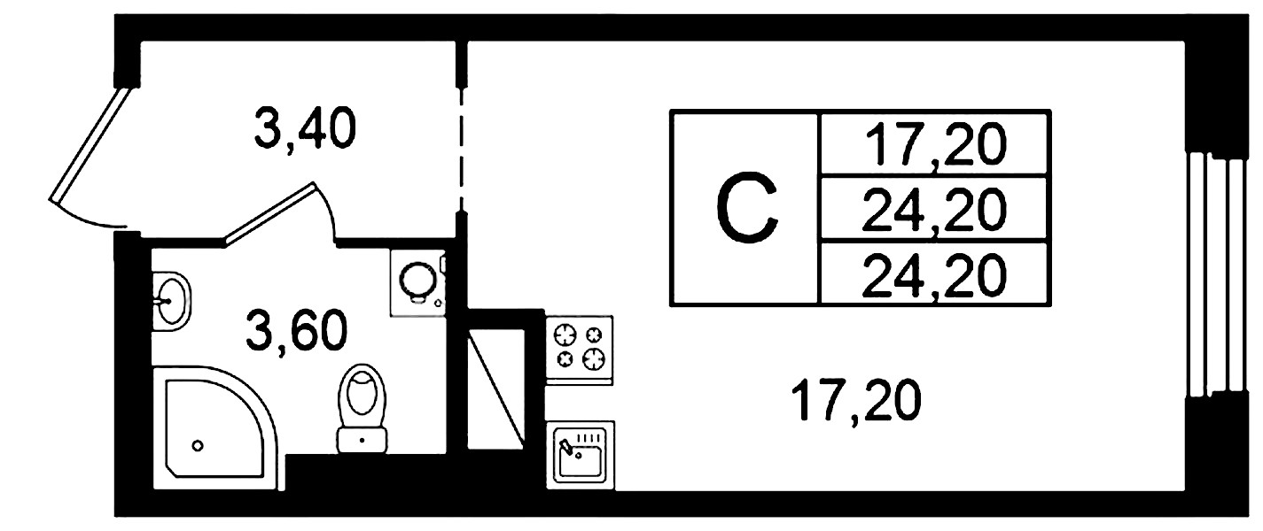- Площадь24,2 м2