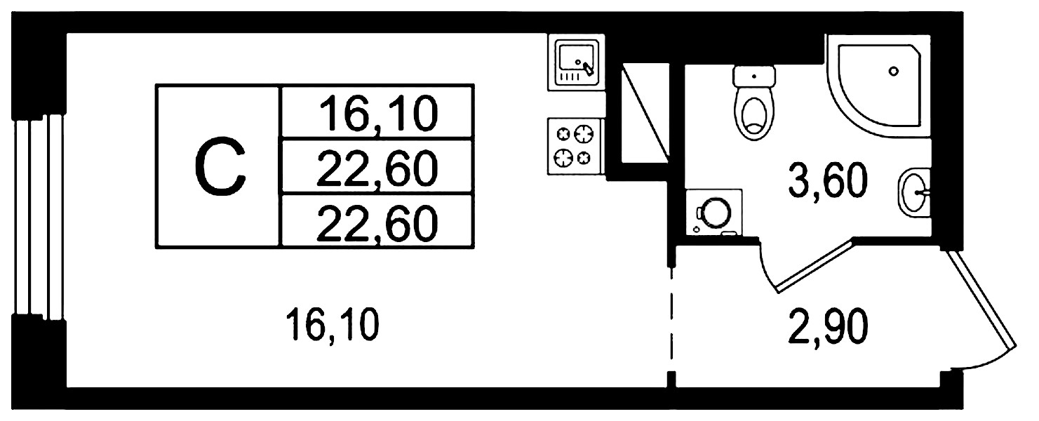 Квартира-студия на 10-ом этаже 22,6 кв.м