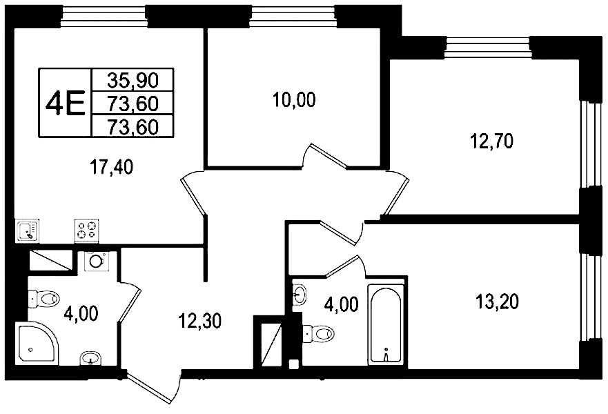 Трёхкомнатная квартира на 5-ом этаже 73,6 кв.м