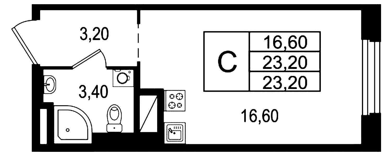 Квартира-студия на 5-ом этаже 23,2 кв.м