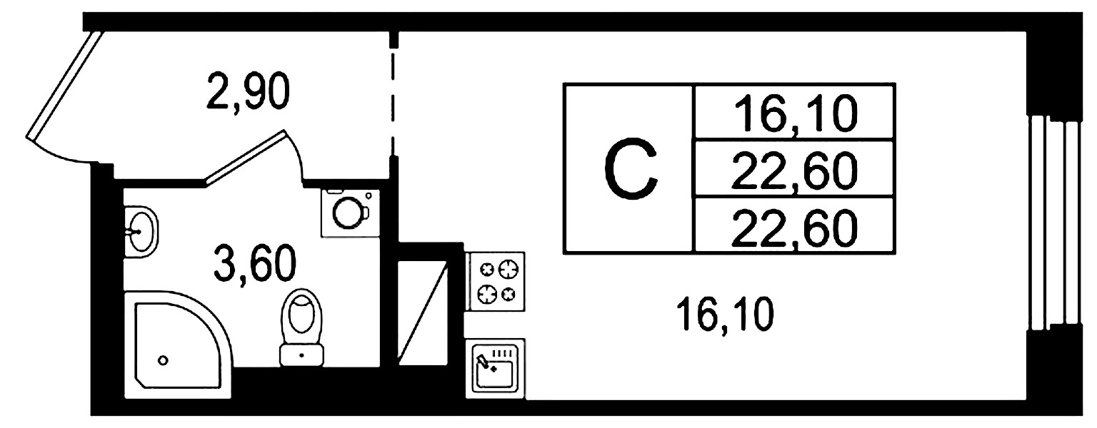 Квартира-студия на 6-ом этаже 22,6 кв.м