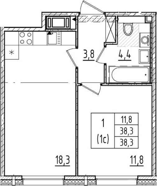 Однокомнатная квартира на 5-ом этаже 38,3 кв.м