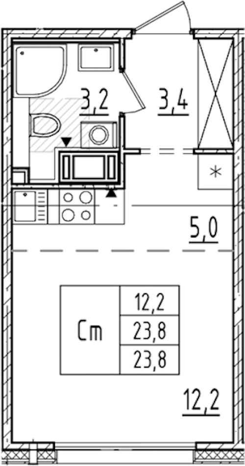 - Площадь23,8 м2